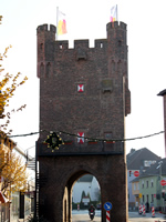 Aber der Verkehr nahm immer mehr zu, und die an das Tor angebaute Stadtmauer musste daraufhin durchbrochen werden. Im Zweiten Weltkrieg wurde das Kölntor mit Panzersperren aus Beton versehen, die heute noch sichtbar sind. Die Kriegsschäden waren hier sehr hoch, und so wurden die Mauern zwischen 1949 und 1953 ausgebessert. Eine ausgiebige Restaurierung wurde von der Karnevalsgesellschaft Blaue Funken vorgenommen. Sie richtete in Zusammenarbeit mit der Stadt und dem Landeskonservator im Tor eine Wachstube ein. Das Bachtor Erbaut wurde es im Jahre 1393, ebenfalls als Doppeltoranlage am Ende der Bachstraße im Norden in Richtung Bergheim und Niederlande. Hier wurde das Vortor, auf einem Stich von 1746 als Zinnenvortor ohne Rundtürme (ähnlich Kölntor) dargestellt, wegen des zunehmenden Verkehrs um 1900 entfernt. Die Stadtmauer reichte bis an das Tor heran. Später wurde sie, wieder wegen des Verkehrs, durchbrochen. Heute läuft die Straßenführung der nach dem Tor benannten Bachstraße (K 82) westlich am Tor vorbei. Das Weiertor Das allgemein als "schönstes der Zülpicher Tore" bezeichnete westliche Stadttor nach Düren wurde ebenfalls Ende des 14. Jh. als Doppeltor erbaut. Bei Bombenangriffen wurde es zum Großteil zerstört. Das eigentliche Haupttor, rechteckiger Torturmbau mit Zinnenkranz ähnlich dem Bachtor, steht nicht mehr, nur der linke runde Vorderturm überstand den Krieg. Der rechte Turm wurde erst im Jahre 1974 wieder aufgebaut. Das Münstertor Das Münstertor wurde im Jahre 1357 als erstes der Stadttore am südlichen Ende der gleichnamigen Straße errichtet und führte auf die Landstraße nach Bad Münstereifel. Es ist vermutlich deshalb das einzige Tor, das nicht als Doppeltoranlage geplant und gebaut wurde. Auf dem Stich von 1746 (Das mittelalterliche Stadtbild Zülpichs auf einer Zeichnung der Frühen Neuzeit) ist das Münstertor mit ähnlichem Vortor wie das Bachtor einschließlich der zwei runden Flankentürme dargestellt. Aufgrund des hohen Verkehrsaufkommens musste die Stadtmauer am Tor entfernt werden. Auch das Münstertor wurde im Krieg sehr stark zerstört. Die zinnengekrönten Eckwarte, die es als einziges Tor hatte, wurden erst 1976 wiederhergestellt. Wie das Kölntor beheimatet das Münstertor eine Karnevalsgesellschaft, die Prinzengarde. Problem beim Ausbau zur Wachstube war der Treppenaufgang. Man einigte sich bald auf die Variante einer Stahlkonstruktion neben dem Turm, so wie sie heute sichtbar ist.
