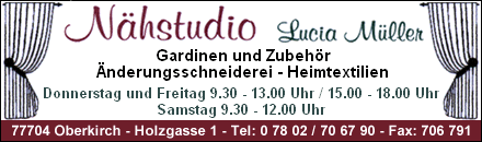 zu Butschbach: Albersbach, Eckenberg, Fürsteneck, Hesselbach, In der Rot, Köbelesberg, Schafhof zu Haslach: Waldeck zu Nußbach: Herztal, Müllen (teilweise), Neubergerhof, Weierhof zu Oberkirch: Gaisbach, Hilzen, Oberdorf, Schloßhof, Waldhof, Wolfhag zu Ödsbach: Bergle, Fiegenbach, Giedensbach, Gnadhof, Grimmersbach, Gründle, Hanselbach, Hengstbach, Heuberg, Hochkopf, Holdersberg, Laibach, Lendersbach, Löchle, Mooshof, Ötsch, Rank, Rotengaß, Schermatt, Sieferspring, Steinhof, Stöckert, Unrechtenbach, Vordere Allmend, Wäldenstraße, Weierhof zu Tiergarten: Hubeneck, Niederlehen, Springhöfe, Tanzberg zu Zusenhofen: Müllen (teilweise) Oberkirch wurde im 11. Jahrhundert als Obernchirchen erstmals erwähnt. Die Siedlung wurde wohl von den Zähringern angelegt und lag nördlich der heutigen Stadt. Wohl nach 1218 kam der Ort an das Reich und wurde den Markgrafen von Baden zu Lehen gegeben. 1225 wurde es als civitas und später als oppidum erwähnt. 1246 wurde der Ort niedergebrannt und danach an heutiger Stelle neu erbaut. Über die Fürstenberger kam Oberkirch 1303 an das Bistum Straßburg. 1326 wurden ihm die Stadtrechte verliehen. Bis auf wenige Unterbrechungen wurde es von den Straßburger Bischöfen beherrscht, doch war es teilweise zu Lehen vergeben (1604 bis 1634 und 1649 bis 1665 an Württemberg und 1683 bis 1697 an Baden). Im 15. Jahrhundert wurde Oberkirch Sitz eines Vogts, dem mehrere Gerichte im Umland unterstanden. Im 30-jährigen Krieg wurde es stark zerstört, ebenso 1689 (bis auf die Kirche), danach aber wieder aufgebaut. 1803 kam Oberkirch zu Baden und wurde Sitz eines Amtes, das 1936 aufgehoben wurde. Sein Gebiet wurde überwiegend dem Bezirksamt Offenburg zugeordnet, aus dem 1939 der Landkreis Offenburg hervorging. Nach dem Zweiten Weltkrieg gehörte der Landkreis Offenburg zum Land Baden und ab 1952 zum Regierungsbezirk Südbaden. Bei der Kreisreform zum 1. Januar 1973 wurde der Landkreis Offenburg aufgelöst. Er wurde dem neu gebildeten Ortenaukreis zugeordnet. Die Eingliederung von neun umliegenden Gemeinden Anfang der 1970er Jahre schaffte die Voraussetzungen, dass die Einwohnerzahl 2002 die 20.000-Grenzmarke überschreiten konnte. Daraufhin stelle die Stadtverwaltung den Antrag auf Erhebung zur Großen Kreisstadt, was die Landesregierung von Baden-Württemberg dann mit Wirkung vom 1. Januar 2004 beschloss. Oberkirch wurde somit die fünfte Große Kreisstadt im Ortenaukreis. Auch die Stadtteile haben eine lange Geschichte. Sie gehörten fast alle zum Gericht Oberkirch des Bistums Straßburg (Gaisbach war vor 1805 ein ritterschaftlicher Ort (Schauenburg), Nußbach und Zusenhofen gehörten zu Vorderösterreich), kamen alle mit Oberkirch 1805 an Baden und gehörten danach meist zum Amtsbezirk Oberkirch. Meisenbühl, Nußbach, Stadelhofen und Zusenhofen gehörten zunächst zum Amt Appenweier und kamen erst 1819 zum Bezirksamt Oberkirch, Ringelbach gehörte zum Amt Achern und kam ebenfalls 1819 zum Bezirksamt Oberkirch. Bei der Auflösung des Bezirksamts Oberkirch 1936 kamen alle Gemeinden zum Bezirksamt Offenburg sowie 1939 zum Landkreis Offenburg. Bottenau wurde erst 1935 als selbständige Gemeinde gebildet. Der namensgebende Ort war 1296 als Botnowe erstmals erwähnt worden und gehörte bis 1935 zur Gemeinde Durbach. Die zu Bottenau gehörigen Weiler Diebersbach (1381 als Diepolczbach erwähnt) und Schlatten (1381 als "in dem Slatten" erwähnt) gehörten bis 1935 zur Gemeinde Butschbach sowie Meisenbühl (1432 als "uff der Egesen" erwähnt) zur aufgelösten Gemeinde Herztal. Herztal (1346 "zu Hetzelis" erstmals erwähnt und heute zum Stadtteil Nußbach gehörig), war seit 1846 der Name der Gemeinde Meisenbühl, als diese aus mehreren Weilern neu gebildet worden war. Butschbach wurde 1360 als Buspbach by Fursteneck, Haslach 1247 als Hasilach, Ödsbach im 11. Jahrhundert als Ongisbach, Ringelbach 1225 als "in dem Ringelbach" Stadelhofen 1347 als Stadelhoven und Tiergarten 1319 als "in dem Thiergarten" erstmals erwähnt und waren früh Teil des Hochstifts Straßburg, Gericht Oberkirch bzw. Oppenau. Gaisbach, 1225 "in dem Geißbach" erstmals erwähnt, entwickelte sich am Fuße der Schauenburg, die ein eigenständiges Territorium der Ritterschaft Ortenau ausmachte und kam 1805 an Baden. Nußbach wurde 994 als Nuzbach und Zusenhofen im 12. Jahrhundert als Uzzenhöfen erstmals erwähnt. Diese Dörfer gehörte zur Landvogtei Ortenau, die vorderösterreichisch war. Oberkirch gehörte zum Bistum Straßburg. Die erste Pfarrkirche ist seit 1225 nachweisbar. Da Oberkirch auch politisch beim Bistum Straßburg blieb, konnte die Reformation keinen Fuß fassen. Oberkirch und sein Umland blieben deshalb über Jahrhunderte ausschließlich katholisch. 1803 kamen die Orte zum Bistum Konstanz bevor diese 1821/27 Teil des neu gegründeten Erzbistums Freiburg wurden. Die Gemeinden gehörten dann zum Dekanat Oberkirch. Heute gehören alle Gemeinden im Oberkircher Stadtgebiet zum Dekanat Acher-Renchtal. Es gibt folgende katholische Gemeinden (zu ihren Kirchen vgl. bei Bauwerke): St. Cyriak Oberkirch (mit Butschbach und seit 1937 auch mit Ringelbach), St. Sebastian Nußbach (mit Bottenau), St. Jakob der Ältere Ödsbach (eigene Pfarrei seit 1932), St. Wendelin Stadelhofen (eigene Pfarrei seit 1887), St. Urban Tiergarten (eigene Pfarrei 1875) und St. Joseph Zusenhofen (eigene Pfarrei seit 1961). St. Aloysius Haslach war eine Filialgemeinde von Renchen-Ulm und ist heute Teil der Seelsorgeeinheit Oberkirch. Anfang des 19. Jahrhunderts zogen auch Protestanten nach Oberkirch. Eine eigene Kirche erhielt die evangelische Gemeinde 1866. Zur Gemeinde gehören auch die Protestanten der Stadtteile Bottenau, Butschbach, Ödsbach, Ringelbach und Tiergarten. Haslach und Stadelhofen gehören zur Gemeinde Renchen, Nußbach und Zusenhofen zu Appenweier. Alle Kirchengemeinden gehören zum Kirchenbezirk Kehl der Evangelischen Landeskirche in Baden. Das Wappen der Stadt Oberkirch zeigt unter rotem Schildhau